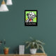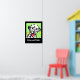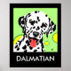 Colourful dog art featuring white Dalmatian with black spots against a light green background and yellow circles