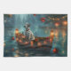 Set sail into the magic of the holiday season with this beautifully detailed illustration, showcasing a proud dog sitting in a festively decorated boat, gliding across a serene Christmas lake. The twinkling lights from nearby pine trees reflect off the water, casting a warm, festive glow that enhances the cozy ambiance. Ornaments dangle from the boat's sides, while glowing lanterns light the way, creating a scene that captures the true essence of Christmas warmth and joy. This nostalgic artwork brings a touch of holiday magic to any space, perfect for those who cherish the spirit of the season.