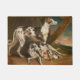 This design features a painting by the English artist James Ward (1769–1859), who specialized in depicting animals. It shows a family of Dalmatian dogs: there is a male dog standing upright beside a female dog lying on the ground with two young pups suckling from her. All of the dogs have the white coats with black or brown spots that is typical of the Dalmatian dog breed. This breed of dog is thought to have come from present-day Croatia and its historical region of Dalmatia, and it was used originally as a hunting dog, but it is now celebrated for its gentle temperament and beauty.