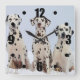 Three adorable dalmatian's posing for a portrait in these wonderful square wall clock. Click customize it to add text if you wish.