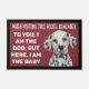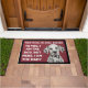 Custom dog doormat with a funny quote. "To you, I am the dog, but here, I am the baby." It has a non-slip rubber that won't crack or buckle, resists fading, mould, and mildew and can be easily cleaned with a hose. Be creative - click on CUSTOMIZE to add/remove/change text, change the picture, resize the picture, change colours, background or anything else the customization tool will allow!