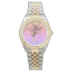The watch is bright and shiny. It feels strong and durable. It is very appealing and attractive. The printed image appears clear. It is a perfect reminder for me to "Be Present" everywhere I go.