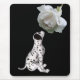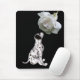 Cute dalmatian puppy smelling a lovely white rose with lingering raindrops animal mousepad - design by Susan. Click on Customize to add text and change background colour. This image is available on many products in my gallery. Please visit Smilin' Eyes Treasures to see more flower and nature photography and digital art cards and gifts.
