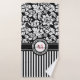 Damas moderne noir et blanc avec motif de rayures géométriques. monogramme personnalisé
