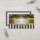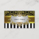 Damask or, Black White Stripe, Gold Ribbon, Gold Étiquette Carte de visite ======== Cet élégant carte de visite présente un damas à look gaufrée or sur un arrière - plan noir, des rayures noires et blanches, un ruban doré et un étiquette blanc encadré d'or. Le design est prêt à être personnalisé avec votre nom sur l'avant, et d'autres informations sur l'envers encadré noir. Veuillez noter qu'il s'agit d'un dessin graphique transféré au produit sous-jacent et qu'il ne contient aucun gaufrage en tissu, ruban ou or