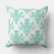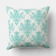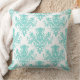 Damask 02 Pattern - Aqua Blue on White Throw Pillow