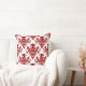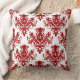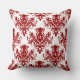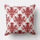 Damask 02 Pattern - Ruby Red on White Throw Pillow