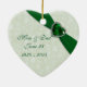 A Digitalbcon Images Design featuring an Emerald colour and Damask design theme with a variety of custom images, shapes, patterns, styles and fonts in this one-of-a-kind "Emerald Wedding Anniversary" Ornament. This elegant and attractive design comes complete with customizable text lettering both on the front and the reverse to suit your own special occasion. This makes a beautiful gift for both family and friends alike in celebration of your momentous occasion.