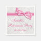Elegant Retirement party napkins for women's retirements. Beautiful white damask pattern background with ornate swirls and flourishes and a pretty, stylish, cute, pink bow and ribbon image. These glamourous, chic, classy serviettes are beautifully sophisticated and are decorated / printed on front side only. PLEASE NOTE: All products on Zazzle have flat printed images. Bows and ribbons images purchased from digital-designs-by-elena. Damask pattern by Delightful Doodles. If you need any assistance customizing your product please contact me through my store and I will be happy to help.