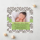 Damask Baby Birth Photo Annoucement Green Brown Announcement