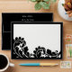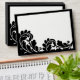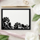 Damask black and white envelope. Design Features a black damask swirly print with a black border and white background.