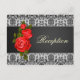 Damask black grey, red roses Wedding Reception Invitation Postcard