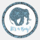 An exotic damask elephant in shades of blue over black with modern text announcing "It's a boy!". If you prefer to add your own text to this sticker, choose the "Customize it" button and delete the "It's a boy!" image, then insert your own custom text. See the matching baby shower invitation here: