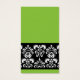 Simple yet beautiful, fun and bright green background with a damask band at the bottom. Remember, you can easily customize with your own text and images! Front and back design. You can change background colour and text colour.