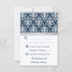 Damask Faux Silver Ribbon Navy Wedding RSVP Card