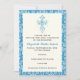 Damask First Holly Communion / Baptism / Confirmation invitation, featuring a blue damask border and an elegant blue cross on ivory background. A modern religious invitation for the traditional event of First Holy Communion, suitable for boys and girls. It can be used for several occasions such as Baptism / Christening or Confirmation.
