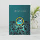 DAMASK GEM STONE MONOGRAM aquamarine blue Invitation