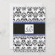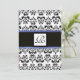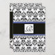 DAMASK MONOGRAM,black white, blue Invitation