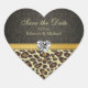 Damask Elegant Leopard themed Save the date sticker with customizable text field and heart diamond.