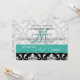 Damask Monogram Names Turquoise Wedding Invitation