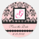DAMASK MONOGRAM,pink fuchsia Classic Round Sticker