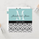 Damask Monogram Wedding Invitation Blue