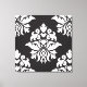 Damask Ornate Repeat Pattern - white on black Canvas Print