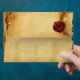 Elegant,classy damask with red wax seal and old aged parchment effects by Bulgan Lumini (c) Cool and artistic design easy to customize with your initials and own text for wedding announcements,save-the-date cards,thank you cards ,sweet 16, bridal showers, birthdays,office holiday parties,anniversaries engagement showers, or just about any event you wish!