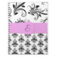 Damask Pattern, Black and White Damask, Monogram Notebook