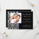 Announce your future wedding with our Save The Date Announcement Cards featuring a beautiful black & white damask pattern with a dark blue trimmed photo frame. Just add your wedding information and photo and you're all set to go! Matching postage stamps and envelope seals available in our shop