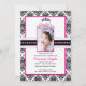 Black and White Damask Princess Photo Birthday Invitations 5X7 with Hot Pink Accent Colour - Created by Colourful Designs Inc. Copyright 2012. All text can be modified.