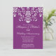 Notre Invitation à l'anniversaire du Mariage présente une belle floraison blanche damassé sur un arrière - plan moderne et clair violet et est parfaite pour un 20e anniversaire, 25e anniversaire, 30e anniversaire, 35e anniversaire, 40e anniversaire, 45e anniversaire, 50e ou 60e anniversaire. Facile à customiser avec vos informations de fête d'anniversaire mariage. Visitez notre boutique pour voir cette invitation mariage design et moderne dans une large sélection de couleurs modernes et tendance.