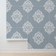 A handmade damask design wallpaper in cadet blue-grey. From soft pastel hues to bold dyes, choose a shade that reflects your style, and bring a vintage touch to your modern home with this original design from The Ink Imprint