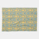 This kitchen towel has a damask element / motif, created by Kristie Hubler, repeated, in a robins egg blue / ocean blue / aqua blue colour, with a light yellow pumpkin / Italian / Mediterranean gold coloured background. Old worldly.