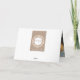 A formal, damask, folded, photo, thank you card in buff and white with a peach background. A small circular window in the back can hold more information.