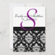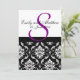 Damask Wedding Invitation with Purple Monogram. Layout design by Elke Clarke©2009. Graphics licensed for use.com and WhiteWhimsicalWeddings.blogspot.com. Customize with your monogram names and wedding colours. Add all your wedding information on the back of the card using Zazzle's easy to use menu prompts.