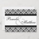 This lovely Damask white and black formal invitation is completely customizable. The cover design has large text for the bride and groom's names and the reverse side has plenty of room for your wedding information. Don't forget the matching accessories!
