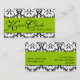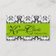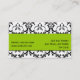 Carte de visite élégant. Conception de motif et de carte de visite de damassé d'Elke Clarke ©2011. Motif vintage noir et blanc de damassé avec une couleur d'accent de vert de chaux. Plus conçoit disponible chez strictlybusinesscards.blogspot.com. Personnalisable avec votre couleur de l'information et d'arrière - plan.