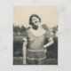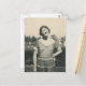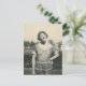C'est une belle carte postale d'une vieille photo d'une femme à l'ancienne avec un regard drôle sur son visage.