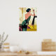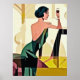 Poster dans une élégante demoiselle Art Déco / jazz en vert jade, tenant un verre, dans un style art moderne et semi-abstrait