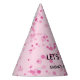Add pizazz to your dance party with these pink and black party hats. All text is customizable. Part of a collection from Parcel Studios.