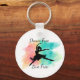 Keychain displays a dancing silhouette with background blended colors of orange, yellow, pink, blue, and green. Item for those who love dance and inspired by their love of dance to live freely through it.