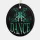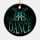The striking dance design in green against a stark black background on this ornament is sure to attract attention. This wonderful ornament is perfect for any dancers or dance teachers. Back is left blank for you to add your own message to the recipient, if you like. Simply use the "Customize it!" button to access the online product editor to personalize this gift. ©Studio Miyabi www.Gifts4Dancers.com