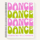 Personalized notebook for dancers with retro typography in bubblegum pink and lime green.
