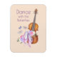 An inspirational saying: Dance with the Butterflies with a soft feminine design. Illustrated with a watercolor image of a wooden violin, some pink ballet slippers resting against it and decorated with flowers and butterflies. Set on a peach pink coloured background.