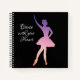 Ballet dancer silhouette, ballerina girl in modern ombre design. Black background and colourful woman dancing personal notepad.