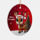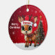 Dancer! Celebrate the holiday season with this festive round ceramic red ornament featuring an endearing woodland forest animal cartoon graphic of a cute baby reindeer wearing a Santa hat, and Merry Christmas written in white. Perfect deer with antlers for decorating your tree or as a thoughtful gift, this whimsical doe decor makes a cherished keepsake for years to come. Customize by changing the text, the font, the font color, or remove the text. You can even transfer this design onto other products. Enjoy this design your way! Check out ForestBabies Xmas Deer Collection for matching decorations. 🎄🦌