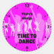 Stylish colourful TIME TO DANCE Round Sticker, showing graphics of dancing silhouettes. Colour scheme is hot pink, sherbet pink and baby pink. Text reads THERE'S ALWAYS TIME TO DANCE in black typography. The text is CUSTOMIZABLE so you can replace with text or name of similar length. Available in other colours.