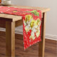 Vintage image of dancing baby angels on a red Christmas Table Runner with snowflakes in white. Very festive!
