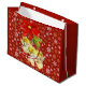Dancing Baby Angels hanging from a Poinsettia flower with gold and white snowflakes falling on this holiday Gift Bag.